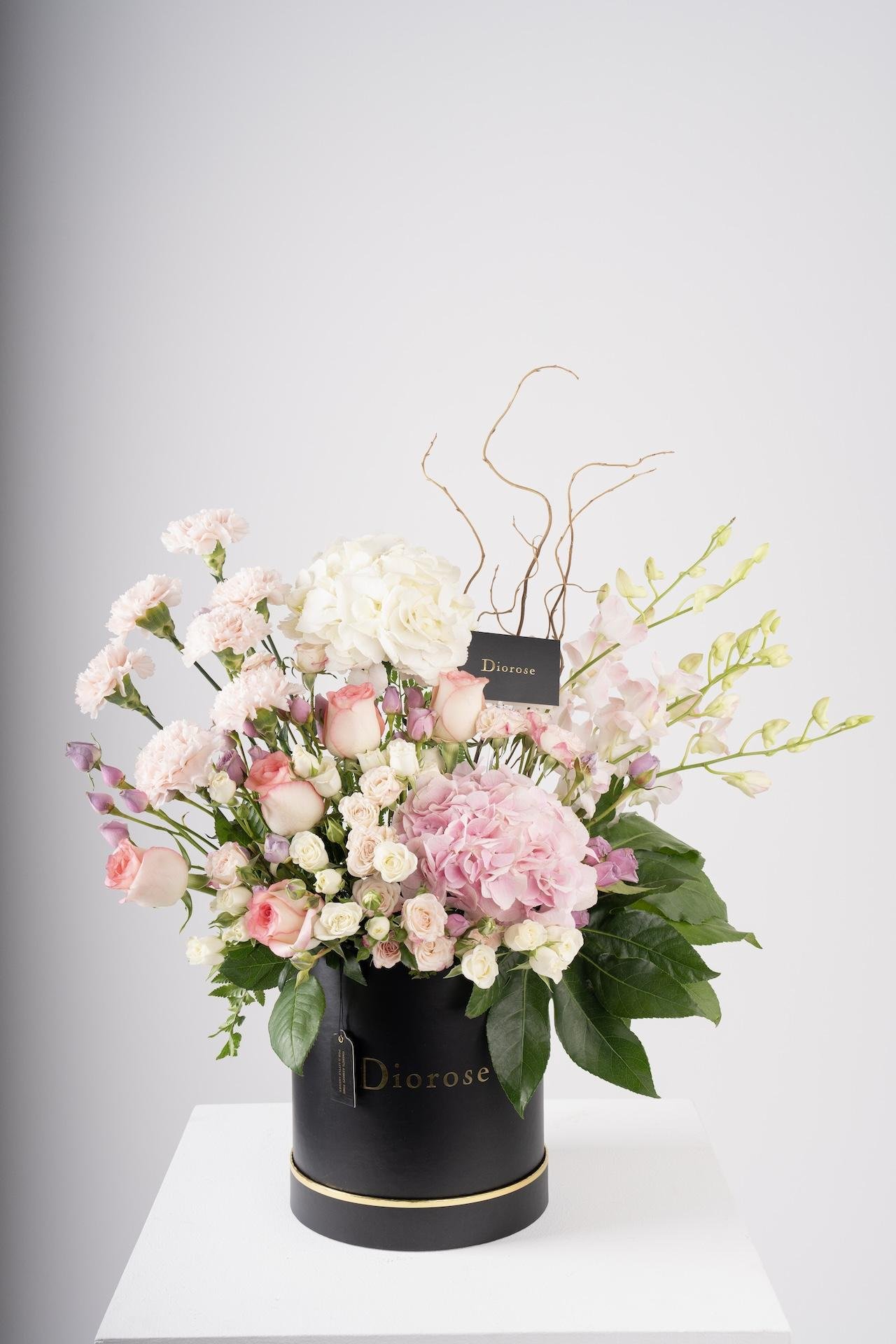 BOXESElevate your surroundings with our sophisticated mix of handpicked seasonal bloom, artfully arranged in a stunning designer box. This captivating bouquet, featuring a vibrant symphony of color and textures, is crafted to enchant and inspire. Ideal as a lavish gift or a statement decor piece, each arrangement reflects refined artistry and exceptional quality, promising to brighten any space with enduring elegance.