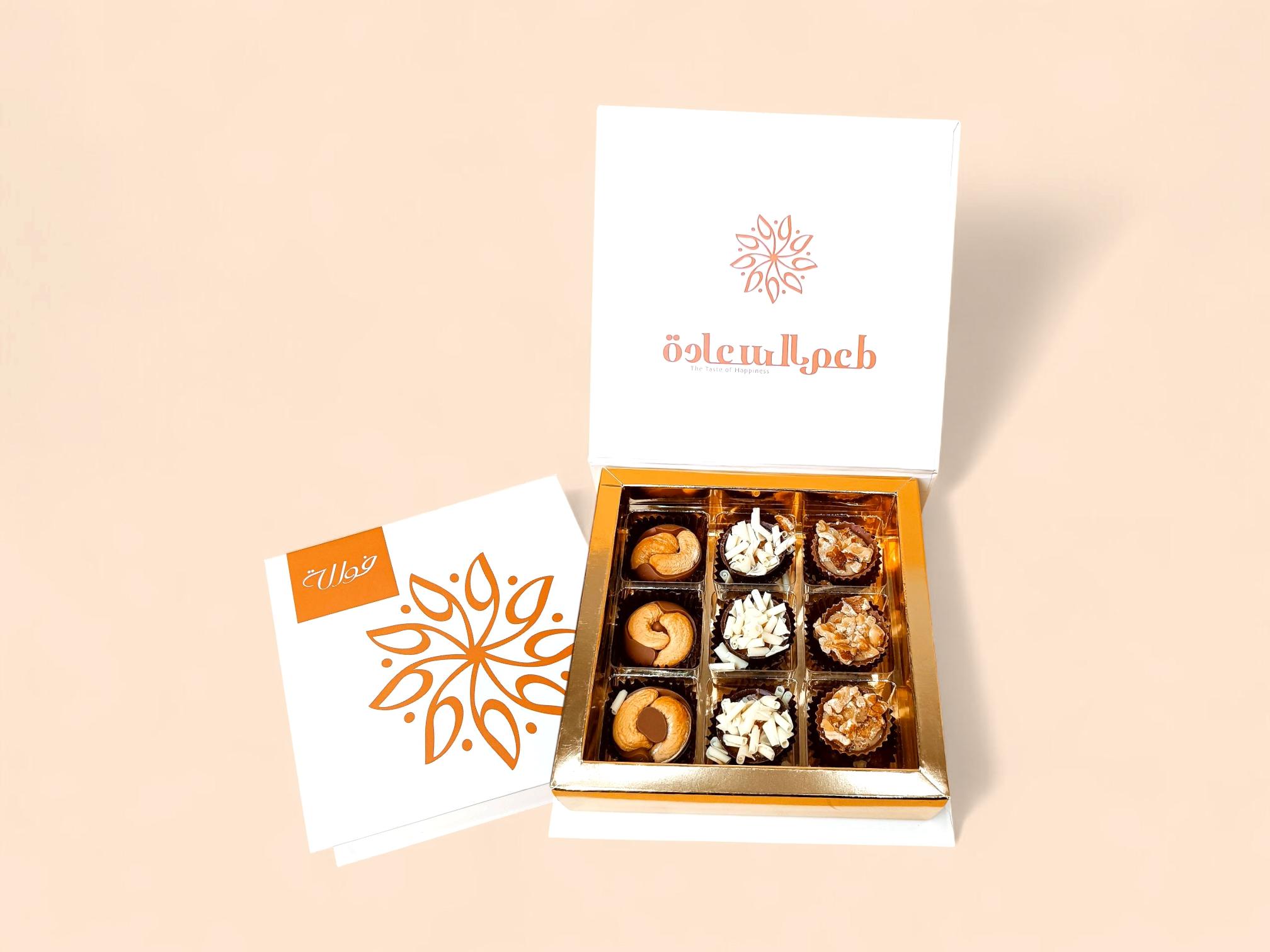 .تشكيلة شوكولاتة بالمكسرات مقدمة في علبة صغيرة الحجم تضم ٩ قطع شوكولاتة