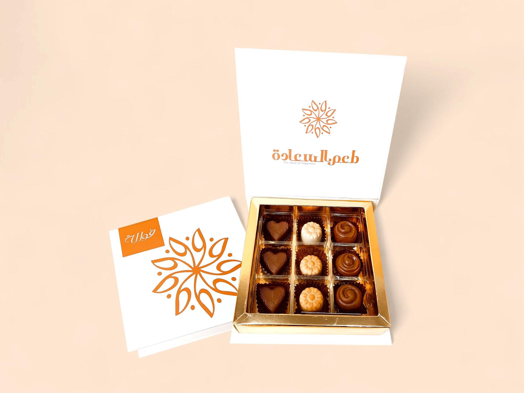 This selection of chocolates is entirely nut-free, although some pieces may contain cream or nut-flavored filling. It comes in a small box containing 9 pieces of chocolate.