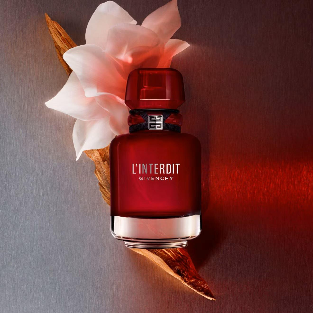 A carnal flower inflamed with a spicy red accord. Givenchy fans the flames of infatuation with the new women's eau de parfum — L'Interdit Eau de Parfum Rouge. Inhibitions burn to reveal sensual obsessions.