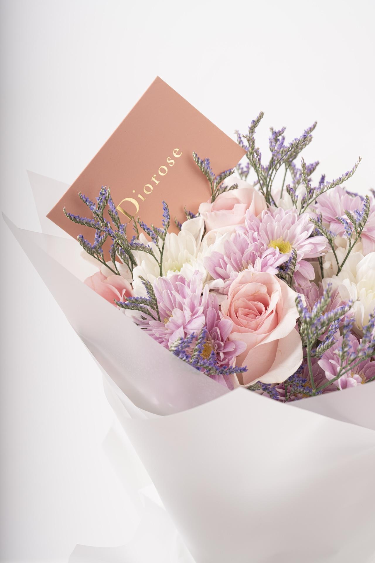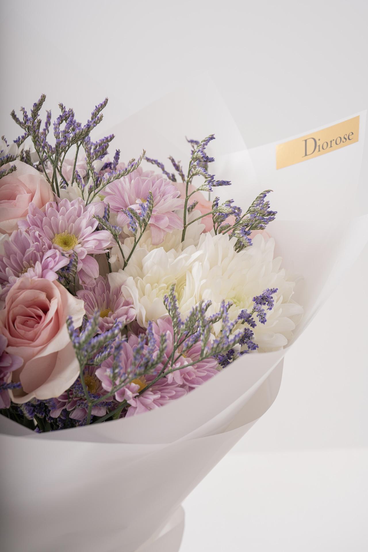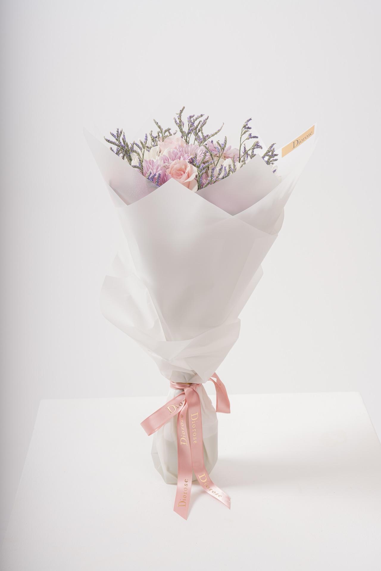 HAND BOUQUETElevate your space with this elegant blend of Rose, Chrysanthemum, and Limonium bouquet. Perfectly crafted to enhance any décor, this stunning arrangement exudes sophistication, making it an ideal gift or centerpiece for any occasion.