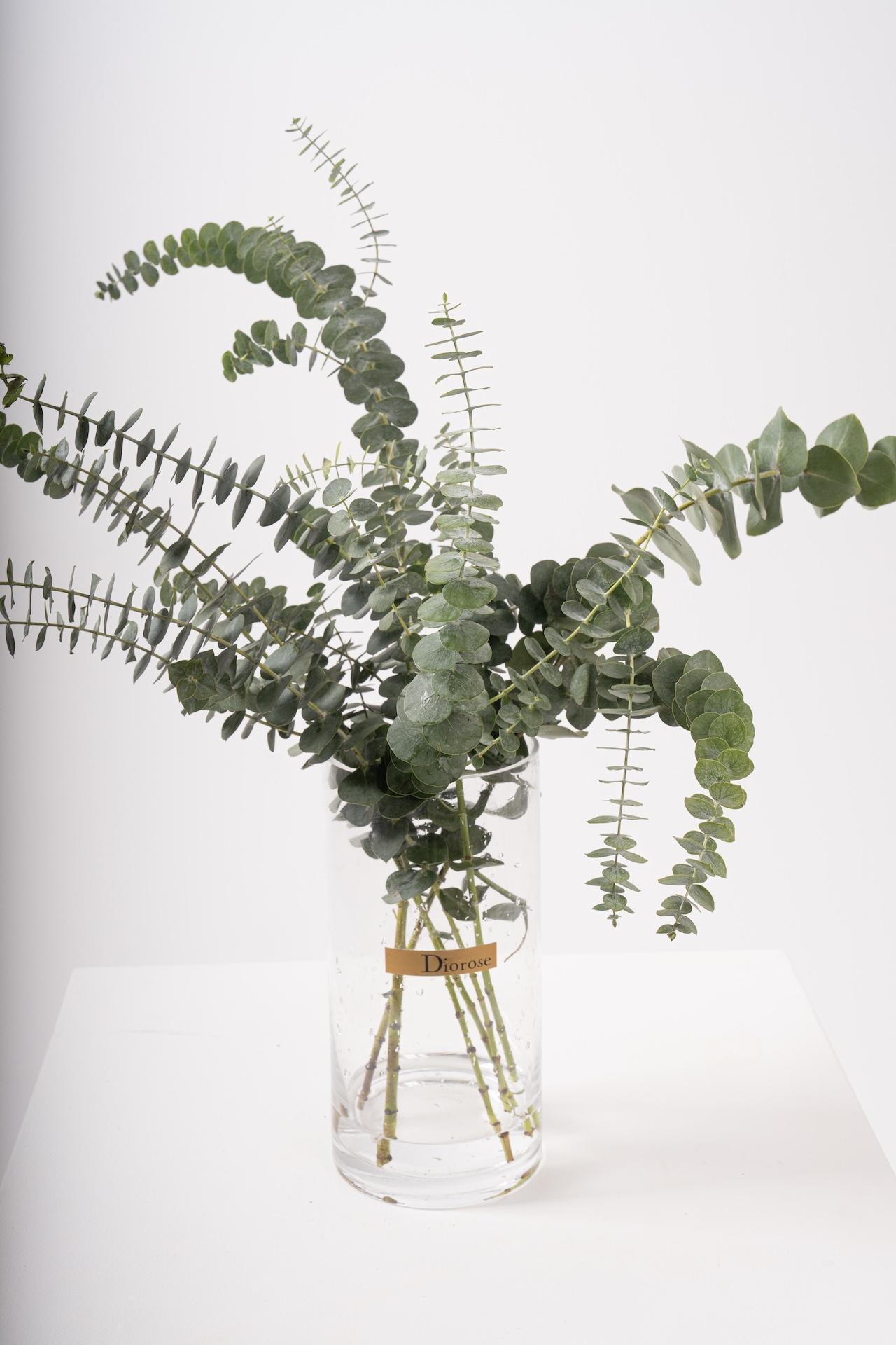 VASESA timeless accent for any interior, this arrangement features fresh eucalyptus stems artfully displayed in a sleek clear glass vase. The soft green tones and graceful shape add a serene, stylish touch to shelves, tables, or entryways.
